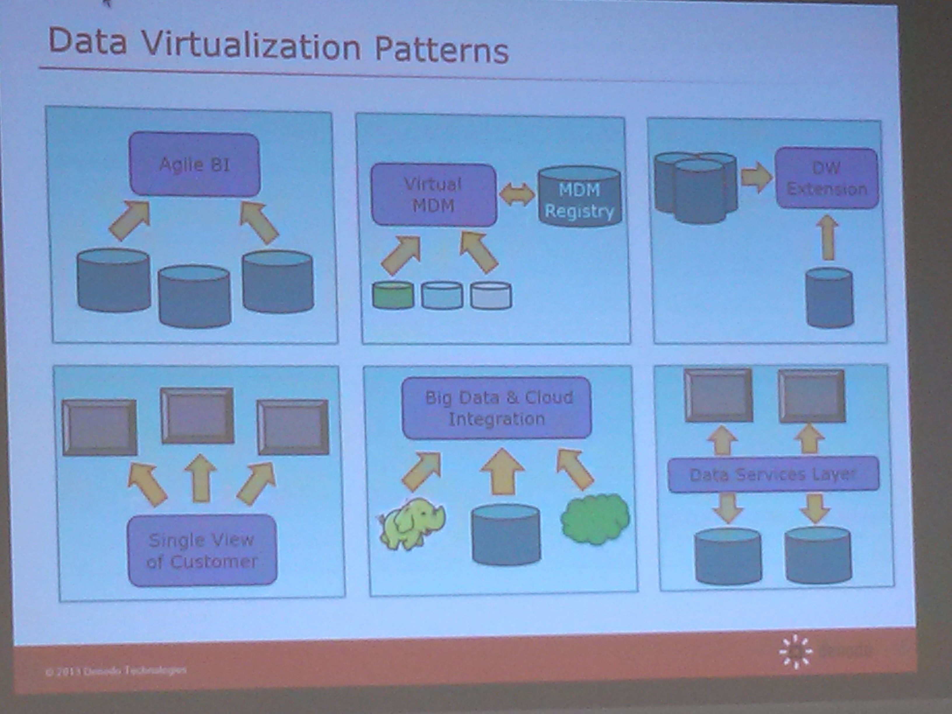 One unique thing Denodo has done is define a variety of patterns they have observed with their clients. In turn they have developed best practices and solutions for implementing those patterns efficiently with their tool (of course).