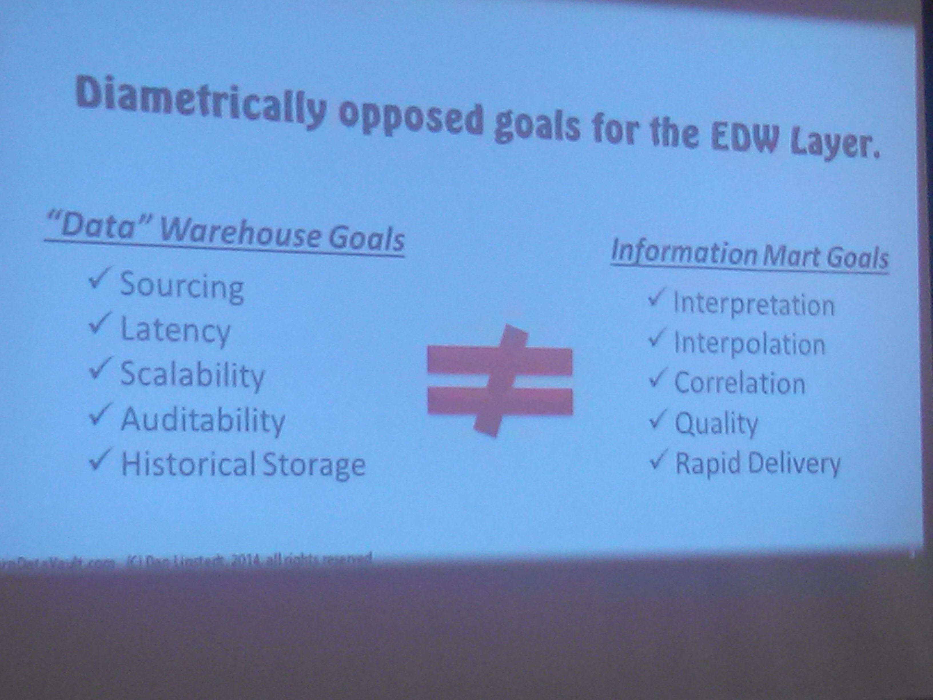 Yes, the hills will be alive with the sounds of Data Vault geeks from around the world telling their tales of trials, tribulations, and success as they try to implement large, agile, enterprise data warehouse programs across many industries. Topics include: